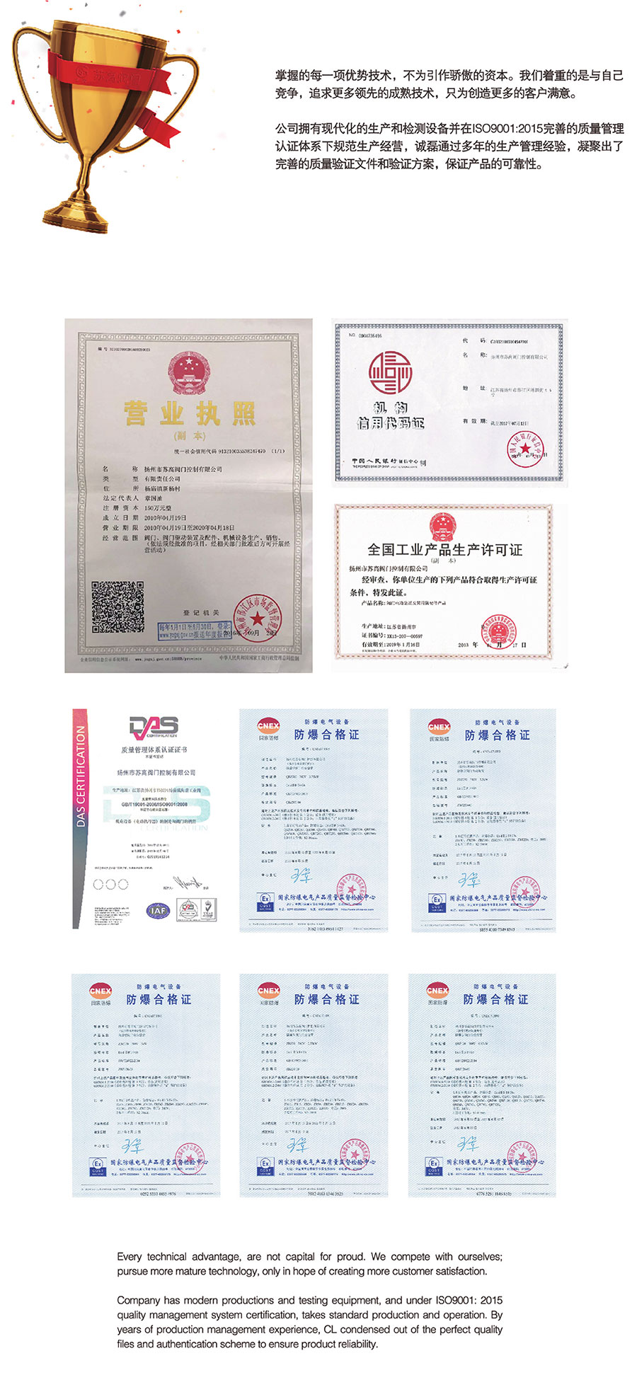 欢迎访问扬州市苏高阀门控制有限公司网站 搜索 扬州市苏高阀门控制有限公司 首页 关于苏高 企业简介 企业文化 荣誉资质 产品中心 多回转阀门电动装置 部分回转阀门电动装置 电动启闭机 西门子电动执行器 电动蝶阀 电动调节阀 电动截止阀 电动闸阀 电动球阀 精小型电动执行器 控制箱 太阳能自供电阀门 其他 工厂车间 新闻中心 公司新闻 行业资讯 技术问答 客户案例 联系我们
